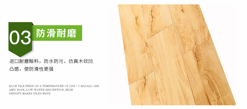 木紋磚具有逼真度高;本身具有阻燃,不腐蝕的特點(diǎn),是綠色、環(huán)保型建材;產(chǎn)品使用壽命長(zhǎng),耐磨,無(wú)需像木制產(chǎn)品那樣周期性地打蠟保養(yǎng)等特征。
